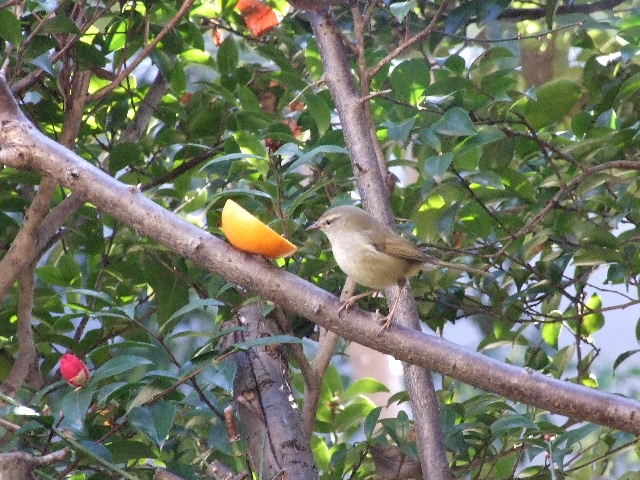 写真はお正月から、目出度くも毎日梅の枝に憩う鴬の姿です。