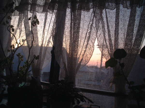 ひとり、12月の寒い朝焼けを窓辺に臨みながら、今年もクリスマスツリーを